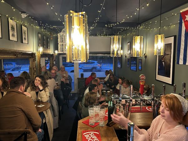 Small, single roomed bar in a retail unit that was taken over in September 2023 . Two cask ale pumps were added to the bar and now has regular rotating cask ales and real ciders. Draught products are similarly rotated with two continental lagers, a porter or stout, a smooth bitter or mild, a pale ale or IPA and a cider. A good range of European bottled beers are available in alcoholic and non alcoholic forms. A selection of wines, gins and rums are also on offer. The pub has a welcoming and friendly atmosphere and is supported by a wide range of age groups. Dogs are allowed in the bar and the heated outside covered seating area more than doubles the capacity.