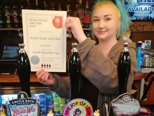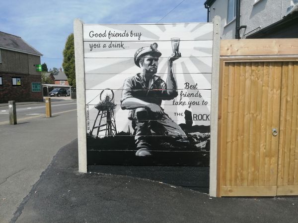 Previously a convenience store in a leafy suburb, this is a very welcome addition to Coalville's beer scene. Deservedly popular with the largest selection of real ales in the area, plus a craft 'beer wall' where a £10 card enables customers to serve themselves, the Rock also has an extensive selection of gins and wines. The cafe serves a wide range of dishes, sourced and prepared locally, and at very competitive prices. The famous, well-filled cobs are available at the bar for those with a very hearty appetite! The seating is a mixture of 100 year old pews from St. Columbus church in Coventry, and comfortably padded beer barrels. The artwork, by local artist Simon Cones, pays tribute to the town's heritage - including coal mining and the Palitoy factory which produced a wide range of Star Wars figures.