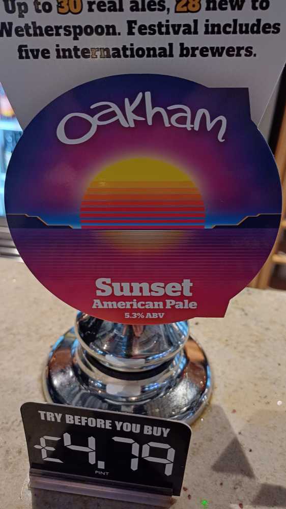 Oakham Sunset not on app. Big new spoons at Waterloo. Soulless warehouse vibe. Busy though.