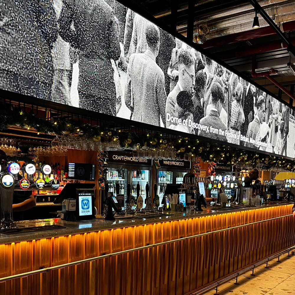First visit, probably wont be my last! Functional and very JDW-esque. Love that they’re selling a choice of 3 Brewdogs for less than you pay in their ‘flagship’ bar next door… but at least you can get cask ale here. Superb digital screen above the bar.