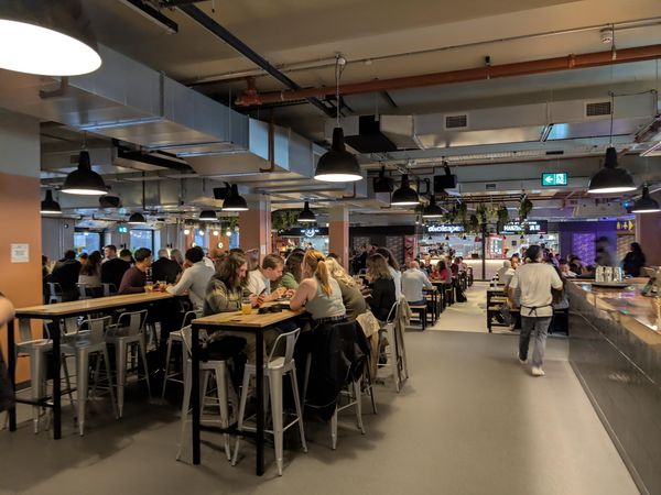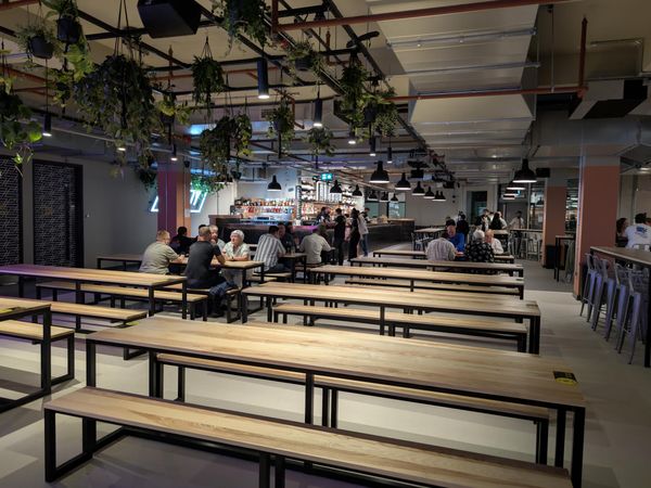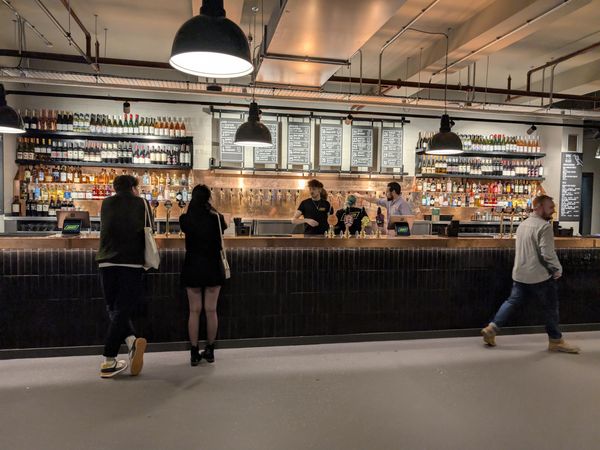 Large food hall and bar close to the city's business district and Snow Hill station. Five local independent businesses operate kitchens here with customers able to mix and match between eateries - Japanese sandwiches followed by Neapolitan pizzas, anyone? Seating is bench style in a large communal eating area. No bookings unless large groups and you may need to sit with others at busy times. The bar boasts four cask lines with beers from breweries across the UK. When it first opened this included Burton Bridge, Burning Sky, Vocation and Siren; though expect these to change regularly. This is complemented by 36 keg lines from predominantly indie craft brewers. There is also an impressive range of spirits and staff are more than happy to take requests for cocktails. Ordering can be done via the app, with a QR code on tables, though WiFi connection may be needed due to the nature of the building (this is available and free). Those wanting a more traditional approach can order at the bar or at the various kitchen windows.