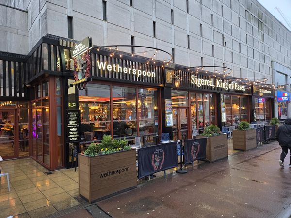 Large pub owned by Wetherspoon. Breakfast served from 8am and food available throughout the day. Up to four changing guest ales alongside Ruddles, Doom Bar and Abbot. Children allowed until 9.30pm.