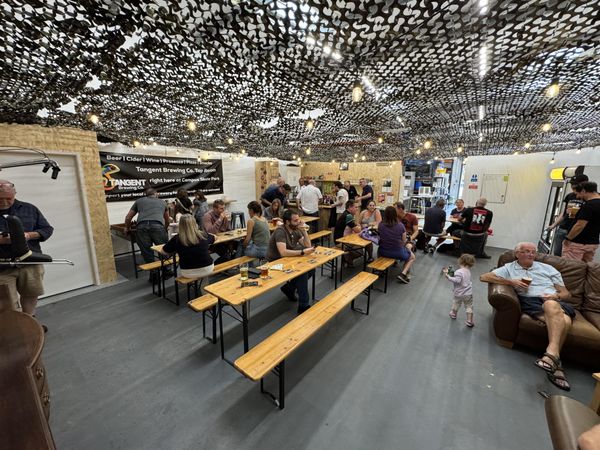Tangent Brewery's taproom opened in September 2025, based in the same location as their brewery. Three of their cask ales are served on rotation, and there are also six keg lines for beers, lagers and ciders, including a guest ale. There are occasional themed nights.